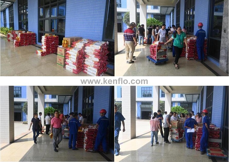 當(dāng)天,公司工會的工作人員早早地來到公司大堂前,把發(fā)放的米、油整齊地擺放好,各分會工作組陸續(xù)前來領(lǐng)取,有車載的,有肩扛的,有手提的,現(xiàn)場歡聲笑語,喜悅之情溢于言表。